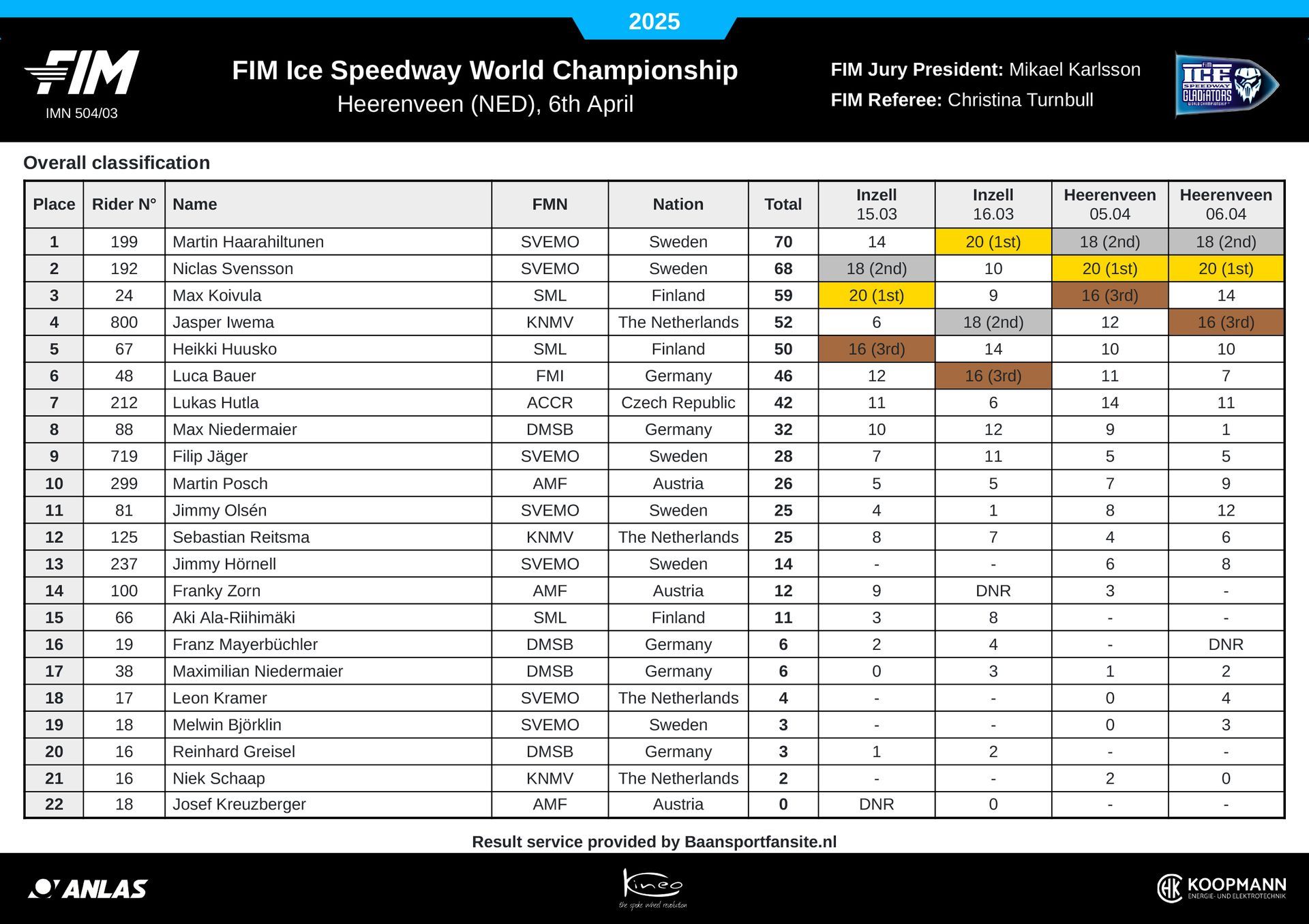 (gesetzt seitens der FIM nach Rücktritt des 5. Platzierten)